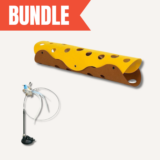 Immerse your feline friend in a world of fun and comfort with our Play & Lounge Set. This unparalleled duo includes the Purr-fect Playmate ...