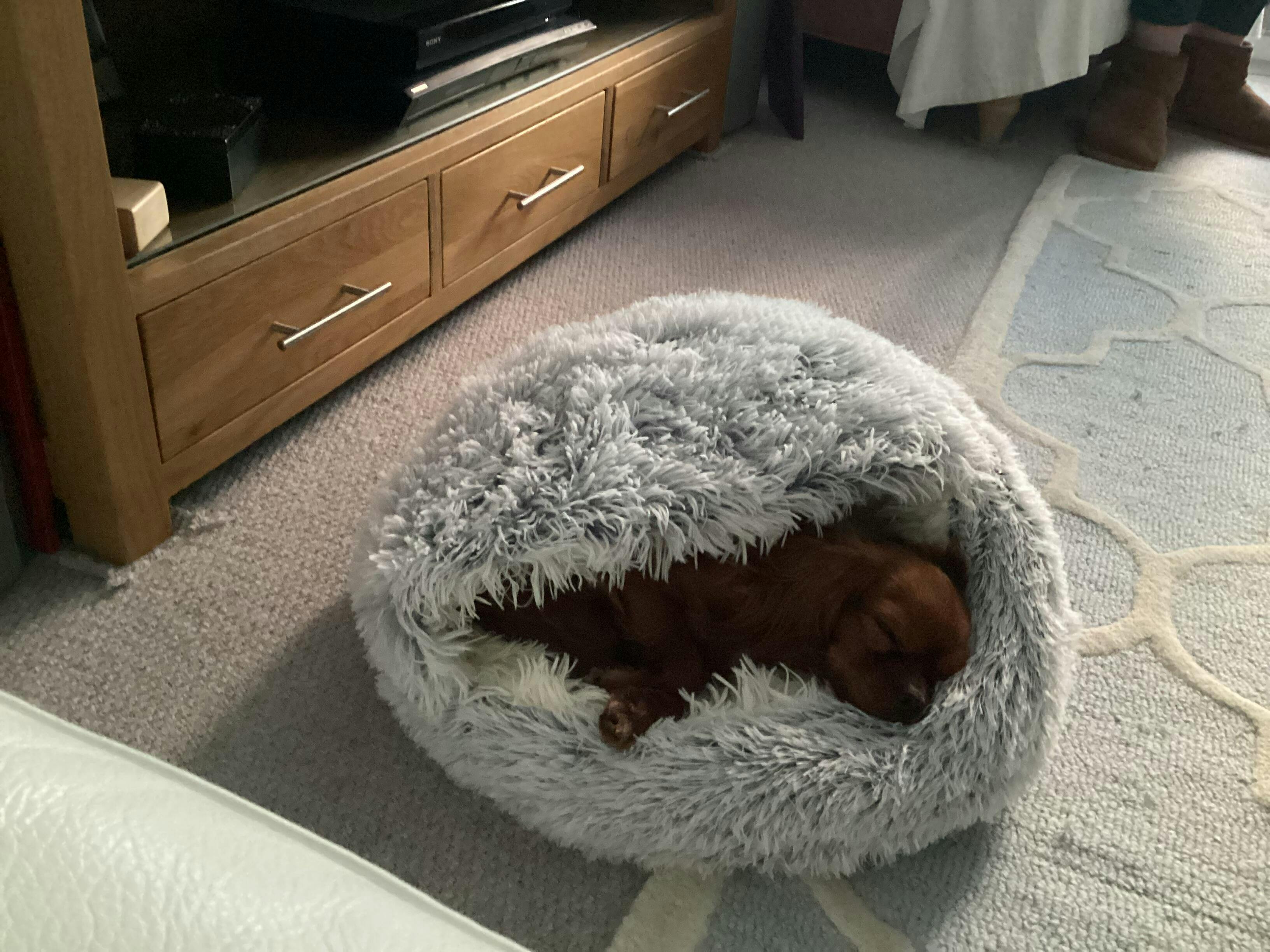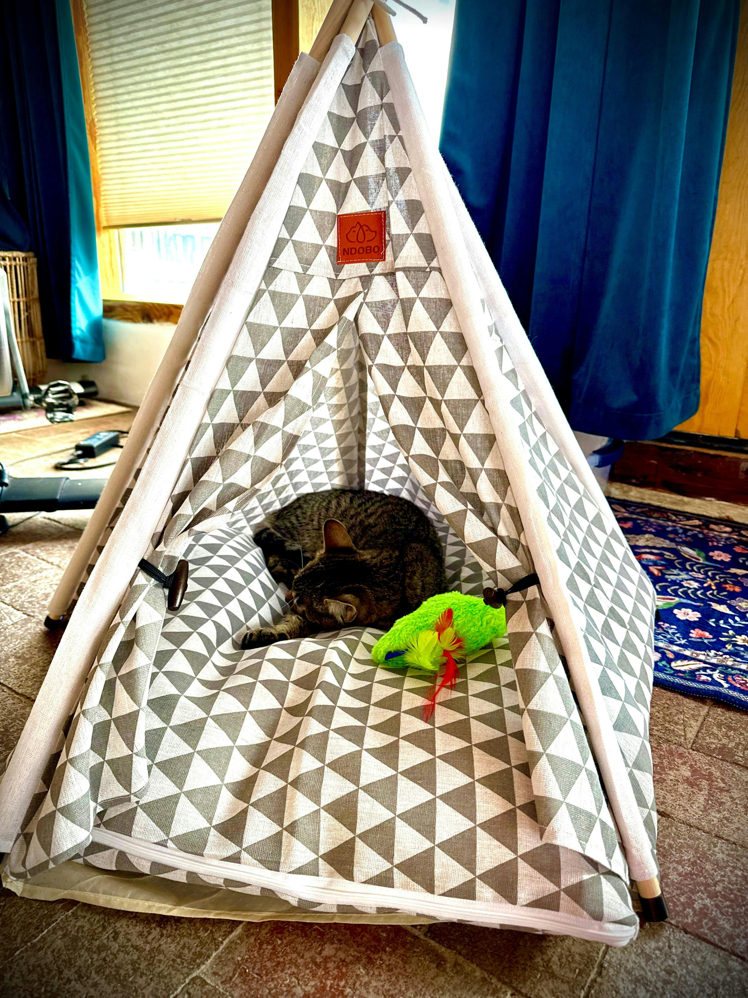 It took a while to receive it but Happy Luna was pro-active with communication and apologetic about the delay - I never had to reach out to them first. The wait was so worth it! I needed a 2nd tent since I have 2 cats. The little kitty knew immediately it was special for her! I love that it has a cushioned base (the other brand tent did not). It’s much cuter too… I already want to buy another now to upgrade the old one and have a cute matching set!