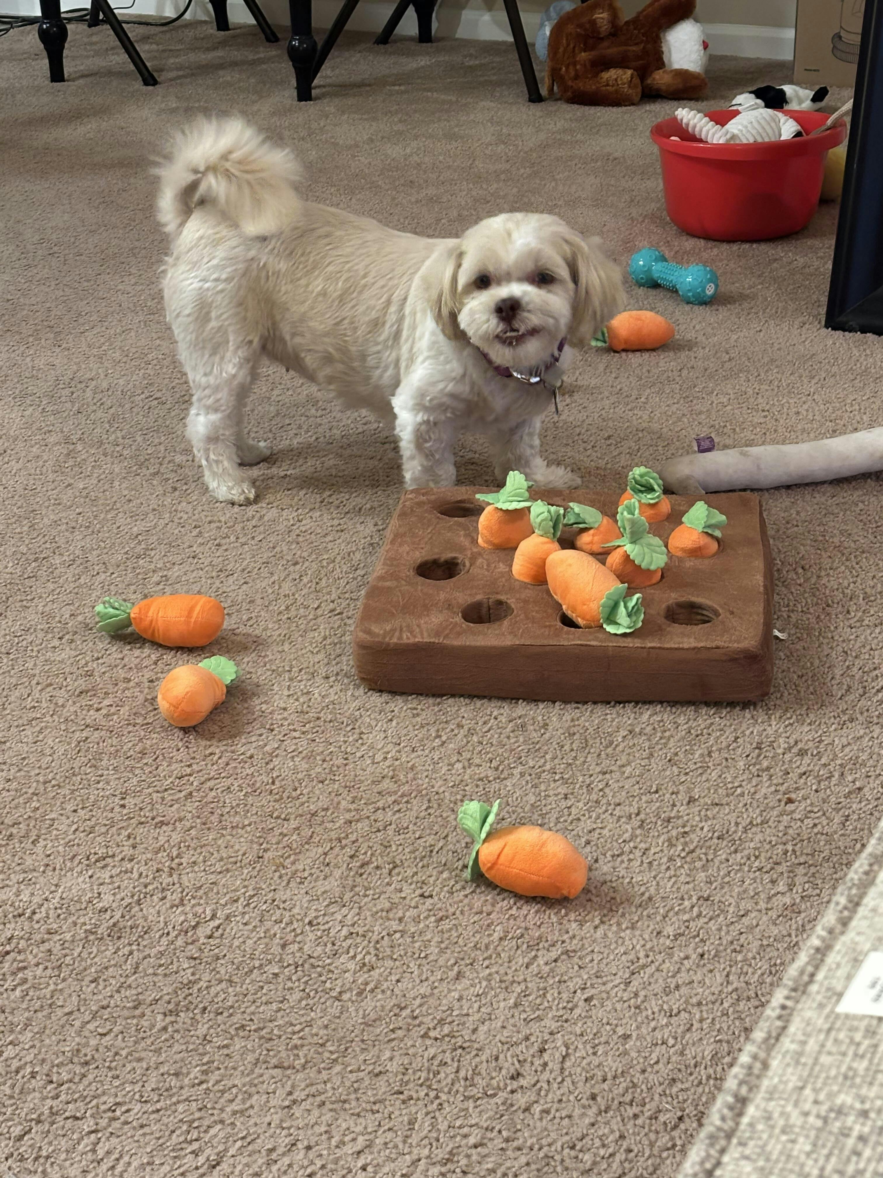 My dog, Waffles, absolutely loves the carrot garden! She enjoys finding her treats and sniffing at the garden.