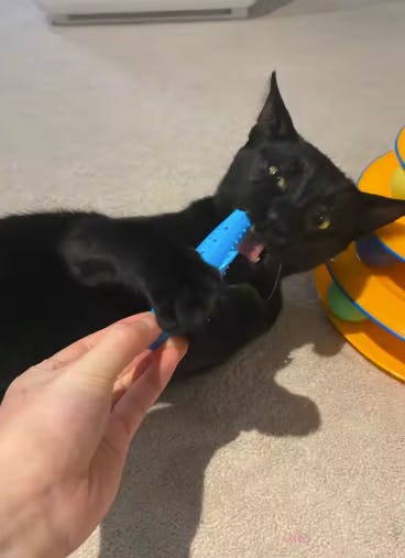 Perfect size and texture, my older cat even plays with it and she’s super picky. It doesn’t smell weird or feel cheap, which is rare for silicone toys. Good enrichment toy overall.