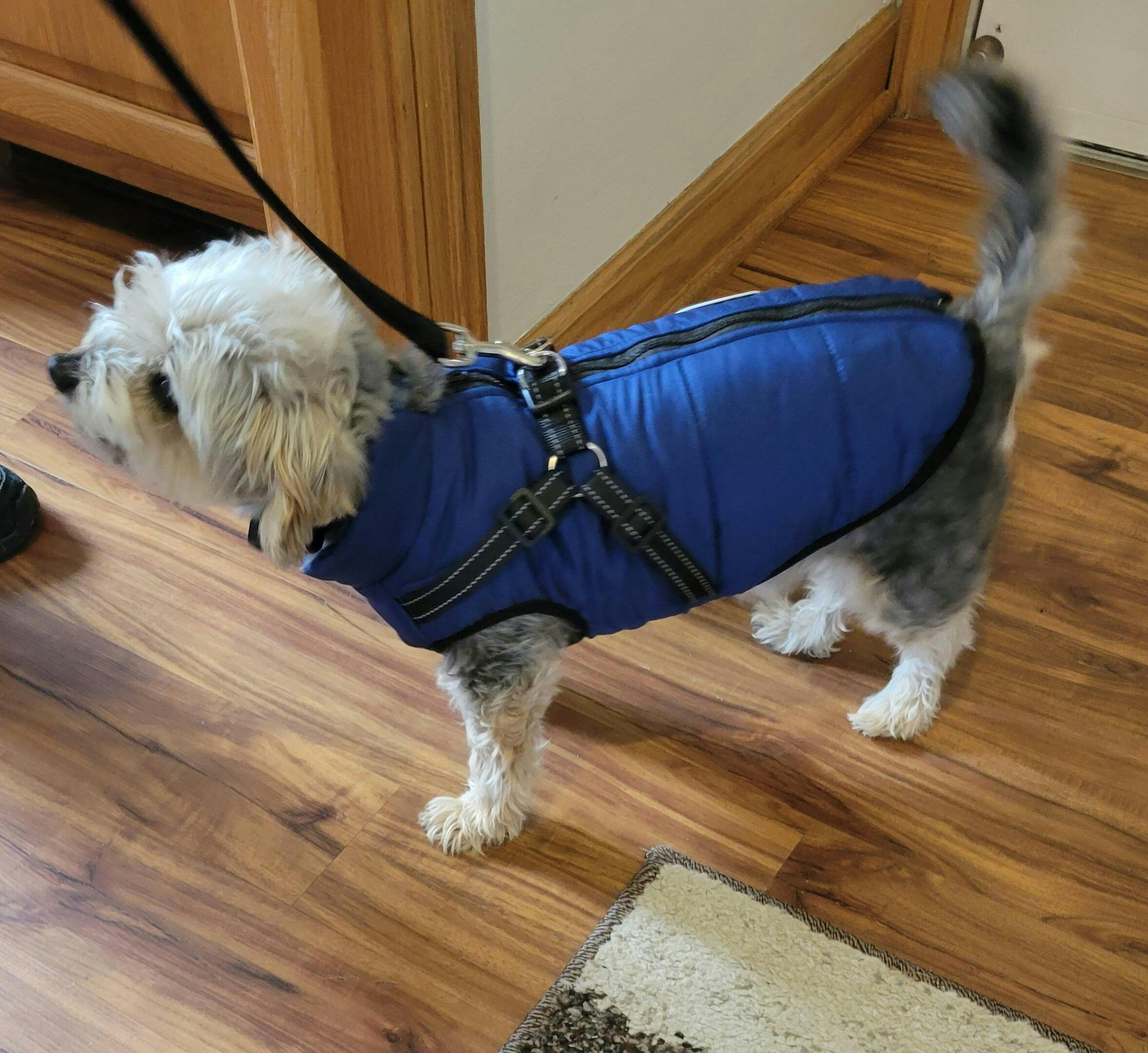 Coat is great, delivery took a long time, however I think it was out of the senders hands, only problem I've found is that the holes for the back leg's aren't tight enough for a dog with skinny back leg's, so had to stitch them and make them smaller