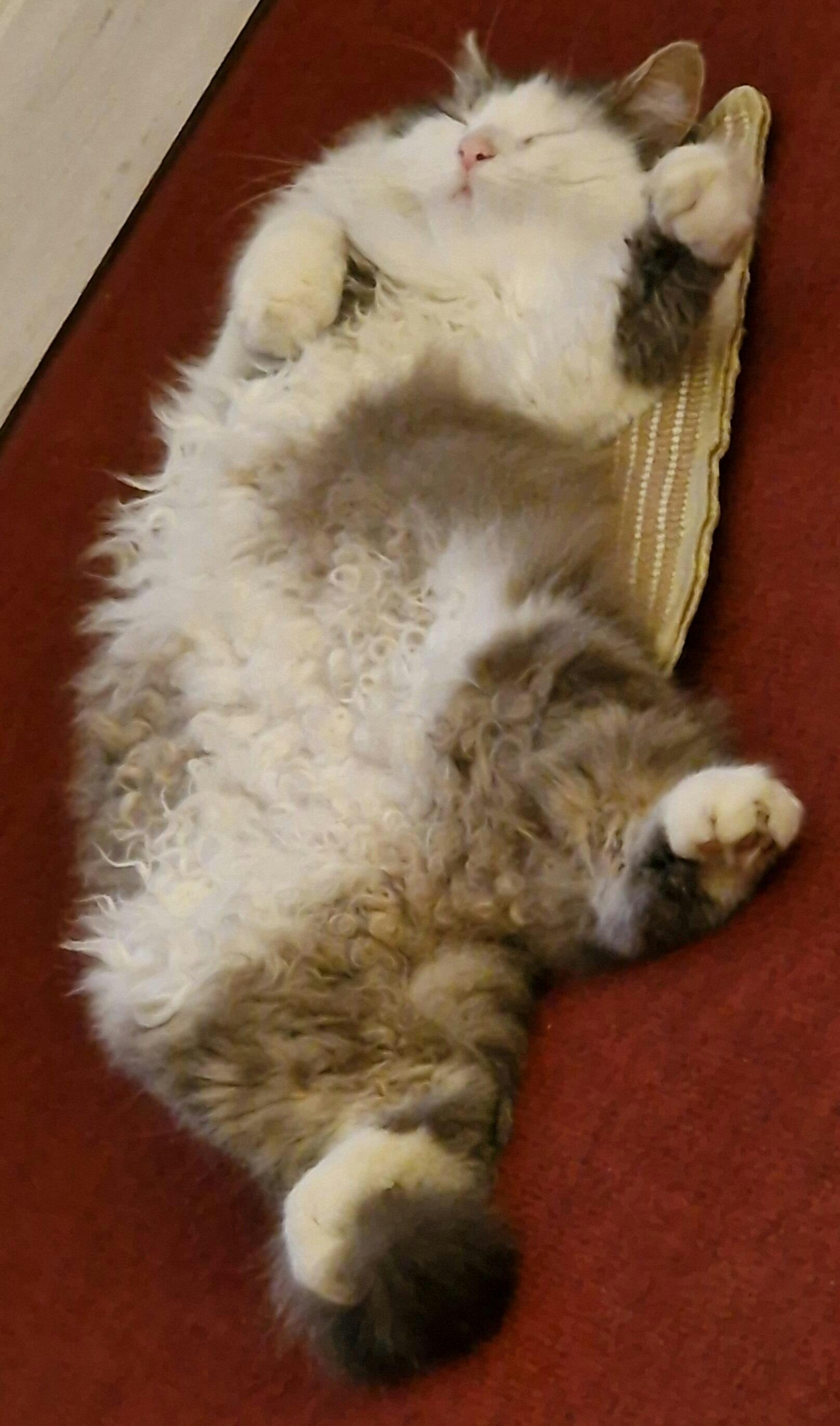Posie loves her bed and built in scratch pad. I often find her lounging in it or lol under it!